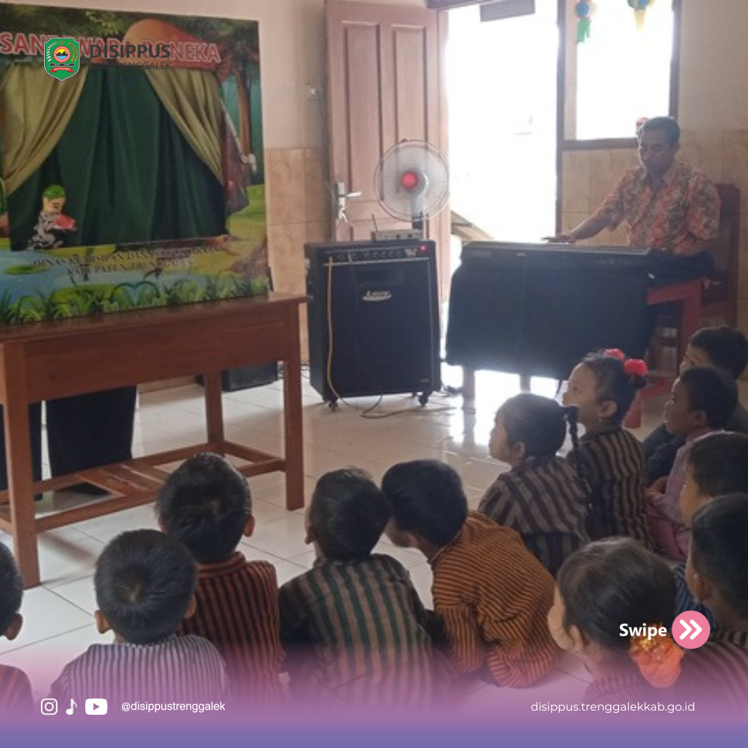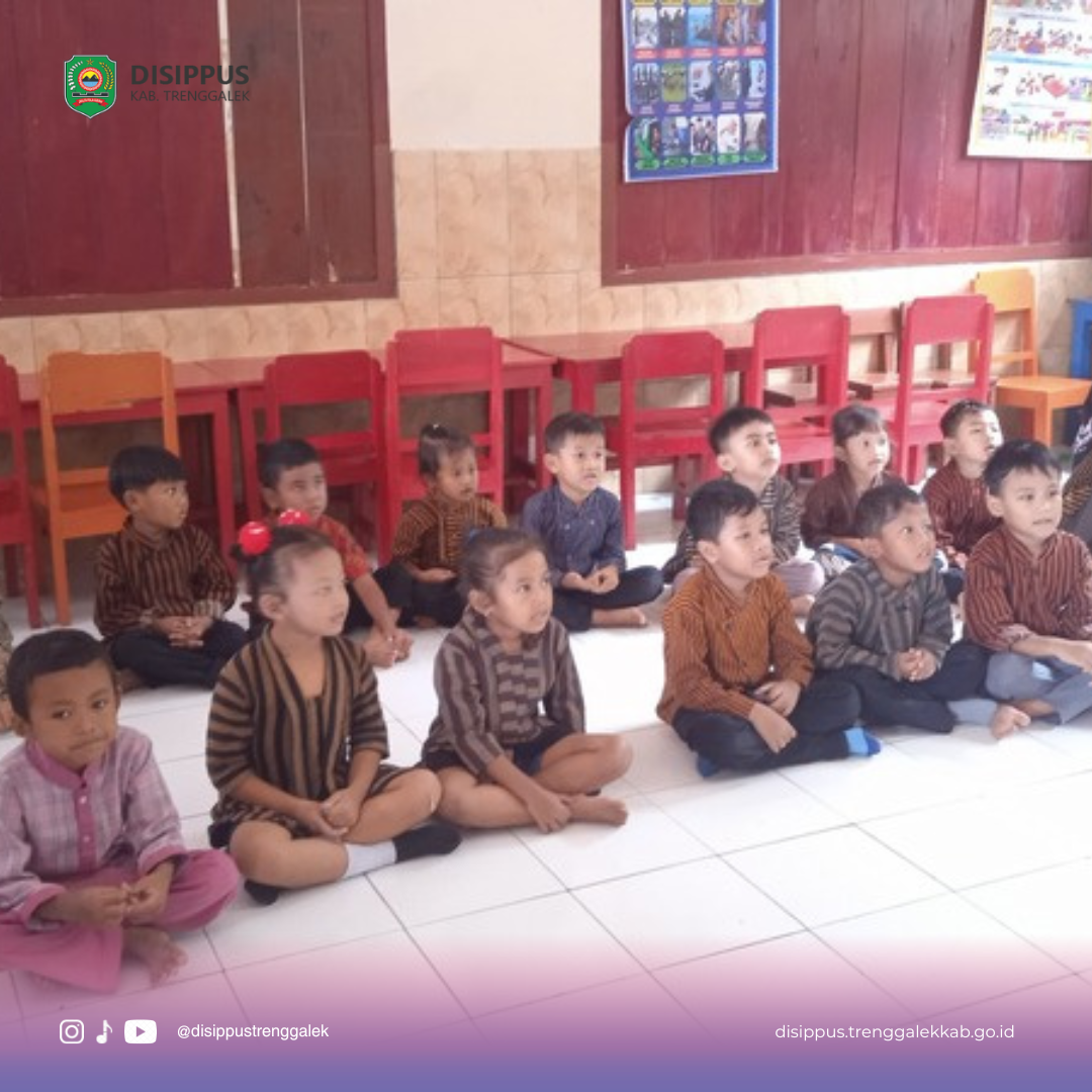 Kegiatan Dongeng Anak Remaja Keliling (DARLING) di TK Dharma Wanita Dawuhan, Desa Dawuhan, Kec. Trenggalek, Kab. Trenggalek.