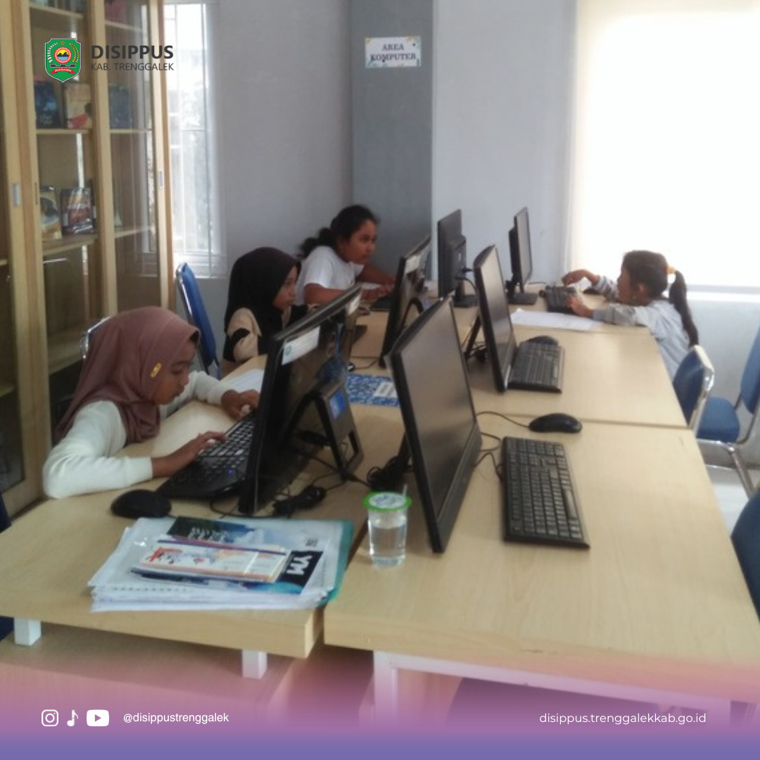 Kegiatan Kelas Komputer di Perpustakaan Daerah Kabupaten Trenggalek, Dinas Kearsipan dan Perpustakaan Kabupaten Trenggalek.