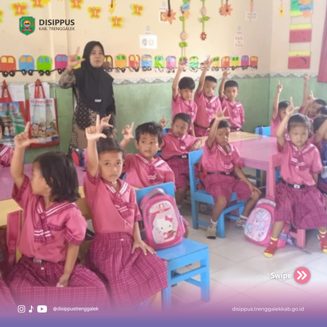 Kegiatan Dongeng Anak Remaja Keliling (DARLING) di TK Dharma Wanita Sambirejo, Kab. Trenggalek.