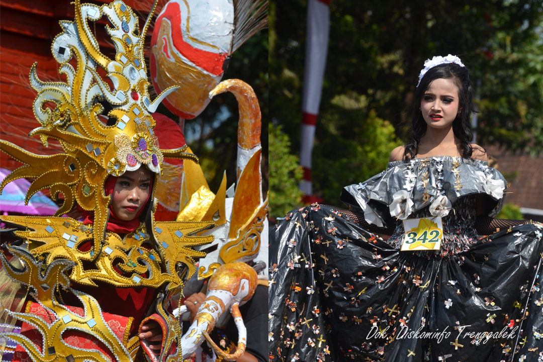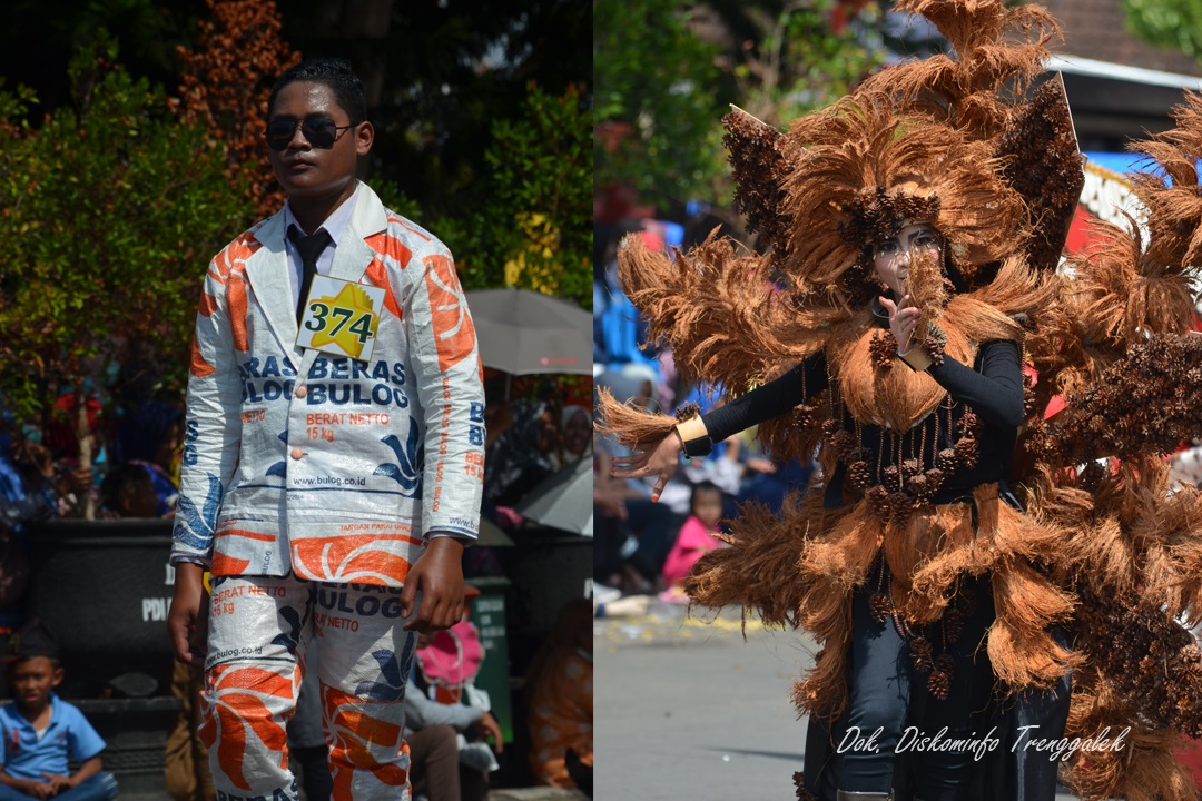Ada yang berbeda dari penyelenggaraan Trenggalek Pop Culture (TPC) 2018 dibanding tahun-tahun sebelumnya, pasalnya di tahun ini bahan daur ulang disulap menjadi fashion unik yang dikenakan oleh peserta parade.  Keunikan ini sontak menjadi magnet dan memanjakan ratusan ribu mata penonton yang memadati sepanjang rute event tahunan ini, Minggu (12/8).