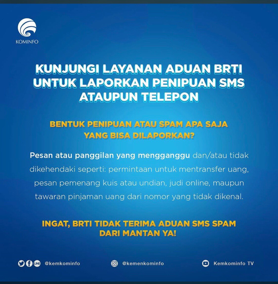 Halo #SobatKom! Buat yang sering menerima SMS penipuan atau SPAM, bisa laporkan ke layanan aduan BRTI ya!