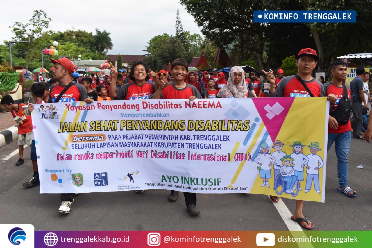 Tak hanya dari penyandang disabilitas saja, ribuan masyarakat umum dari berbagai penjuru Kabupaten Trenggalek juga nampak semangat berbondong-bondong datang untuk mengikuti kemeriahan Jalan Sehat Peringatan Hari Disabilitas 2018.