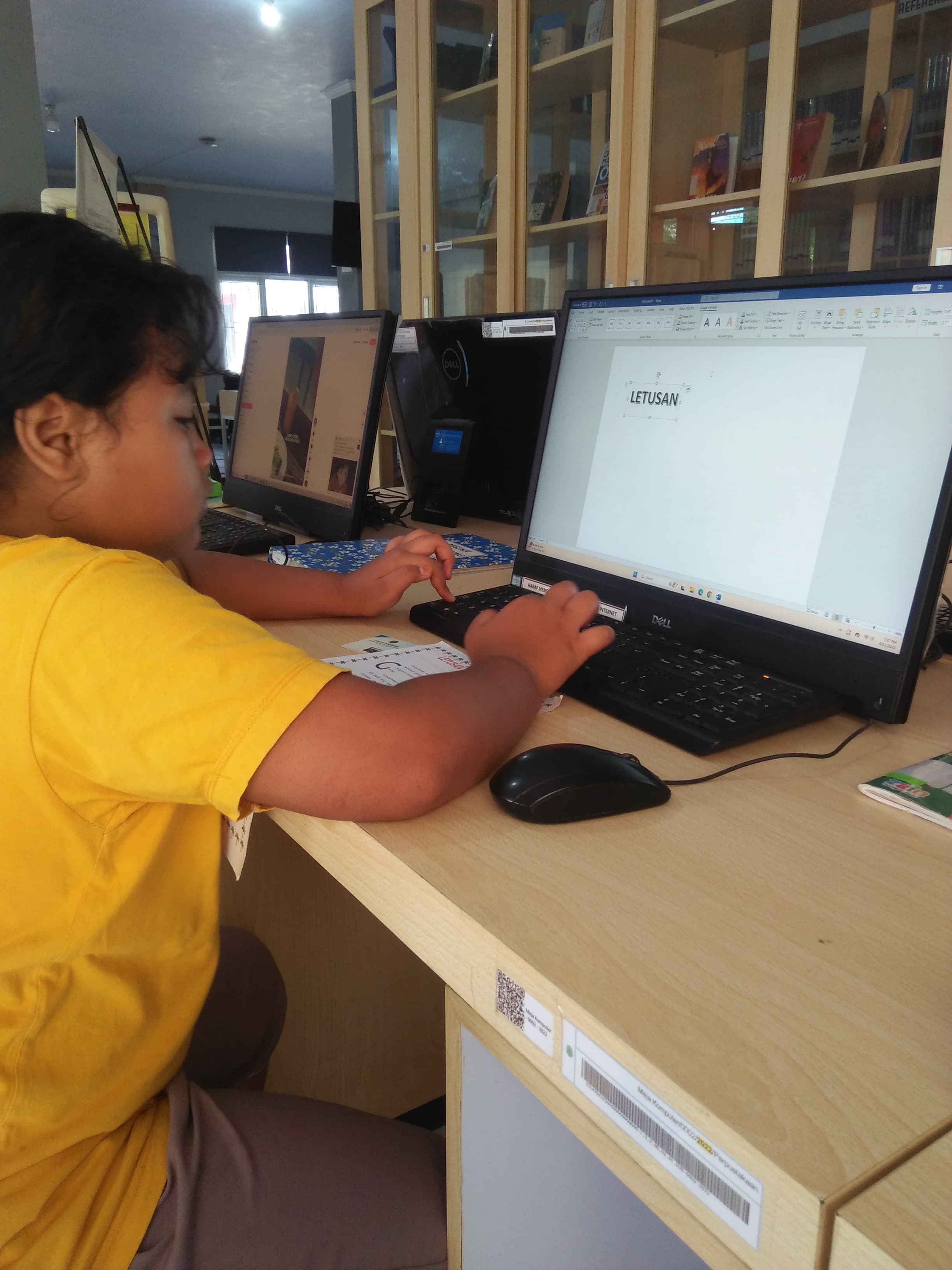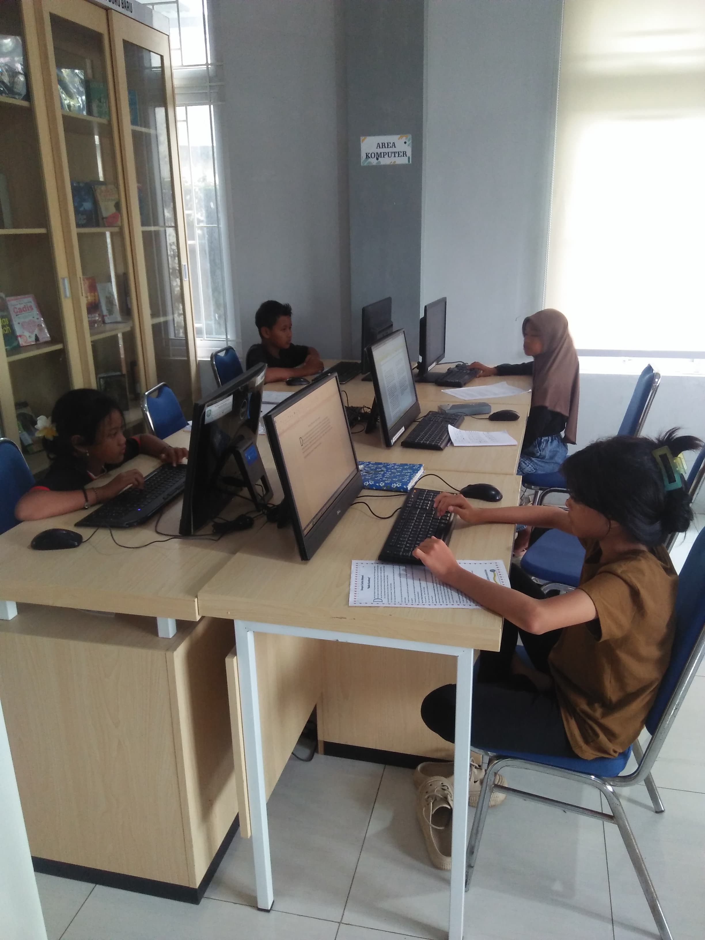 Kegiatan Kelas Komputer di Perpustakaan Daerah Kabupaten Trenggalek. Kegiatan diikuti oleh 1 siswa dan 4 siswi