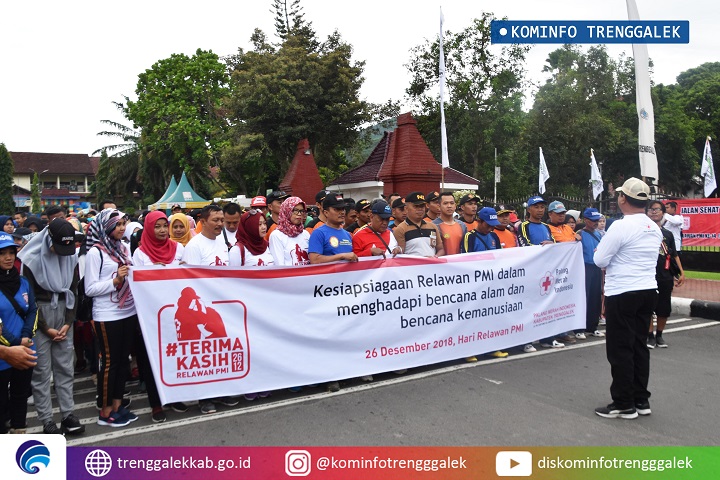 KOMINFO TRENGGALEK - Jalan sehat digelar Palang Merah Indonesia (PMI) Kabupaten Trenggalek dalam rangka memperingati HUT Relawan PMI ke 14 (26 Desember 2018) sekaligus HUT Relawan Internasional (5 Desember 2018).