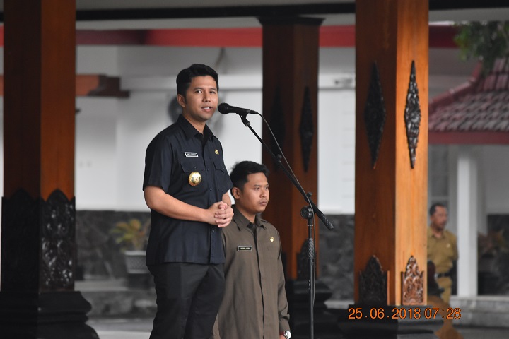 Pembina Apel, Bupati Trenggalek Dr.Emil Elestianto Dardak, M.Sc dalam amanatnya mengingatkan kepada para ASN jajarannya bahwa apel ini mempunyai makna fitrah yang sangat istimewa, pasalnya seluruh ASN bertemu saling berjabat tangan bermaafan usai libur panjang merayakan lebaran idul fitri 1439H.