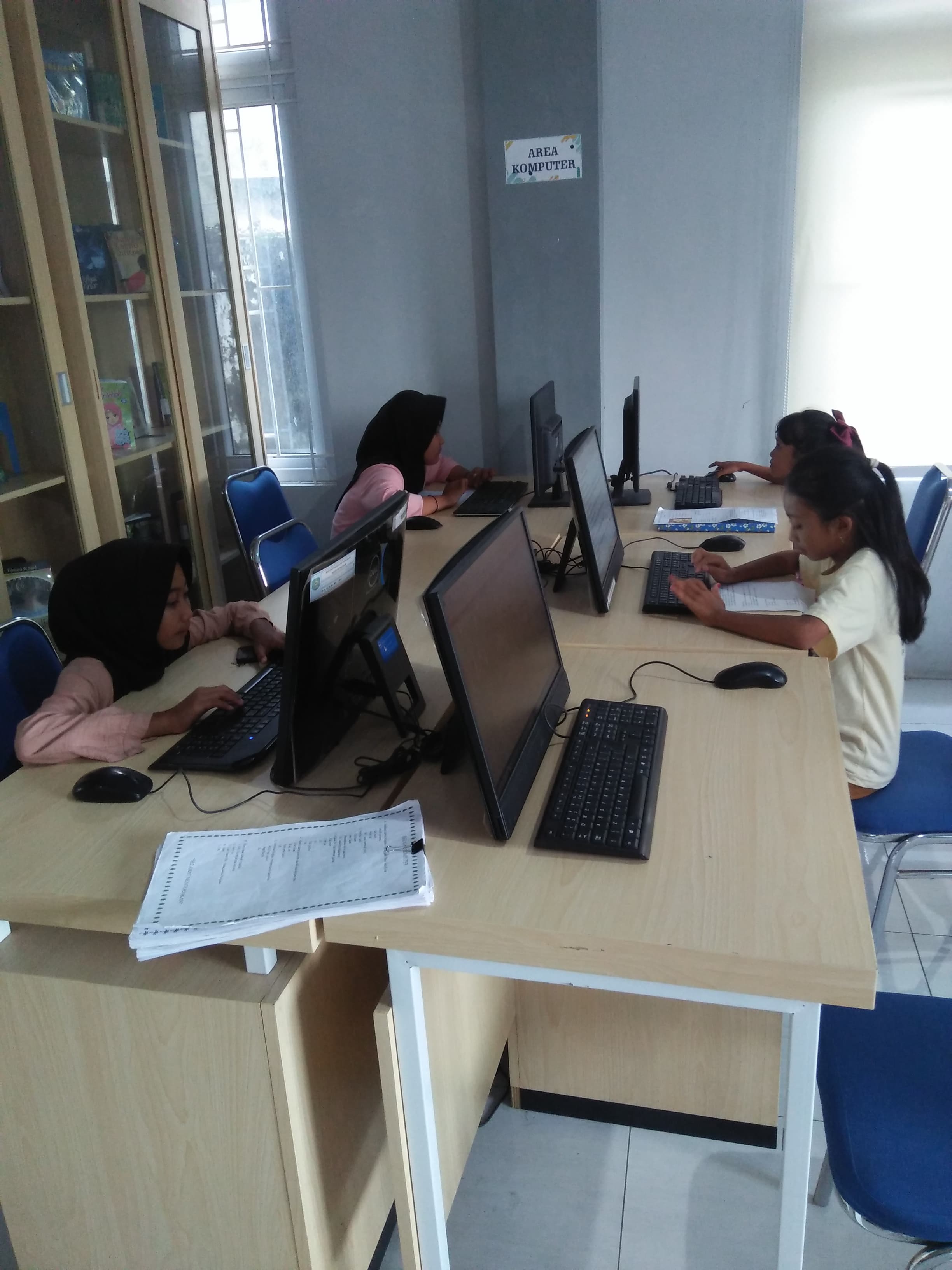 Kegiatan Kelas Komputer di Perpustakaan Daerah Kabupaten Trenggalek. Kegiatan diikuti oleh 5 siswi