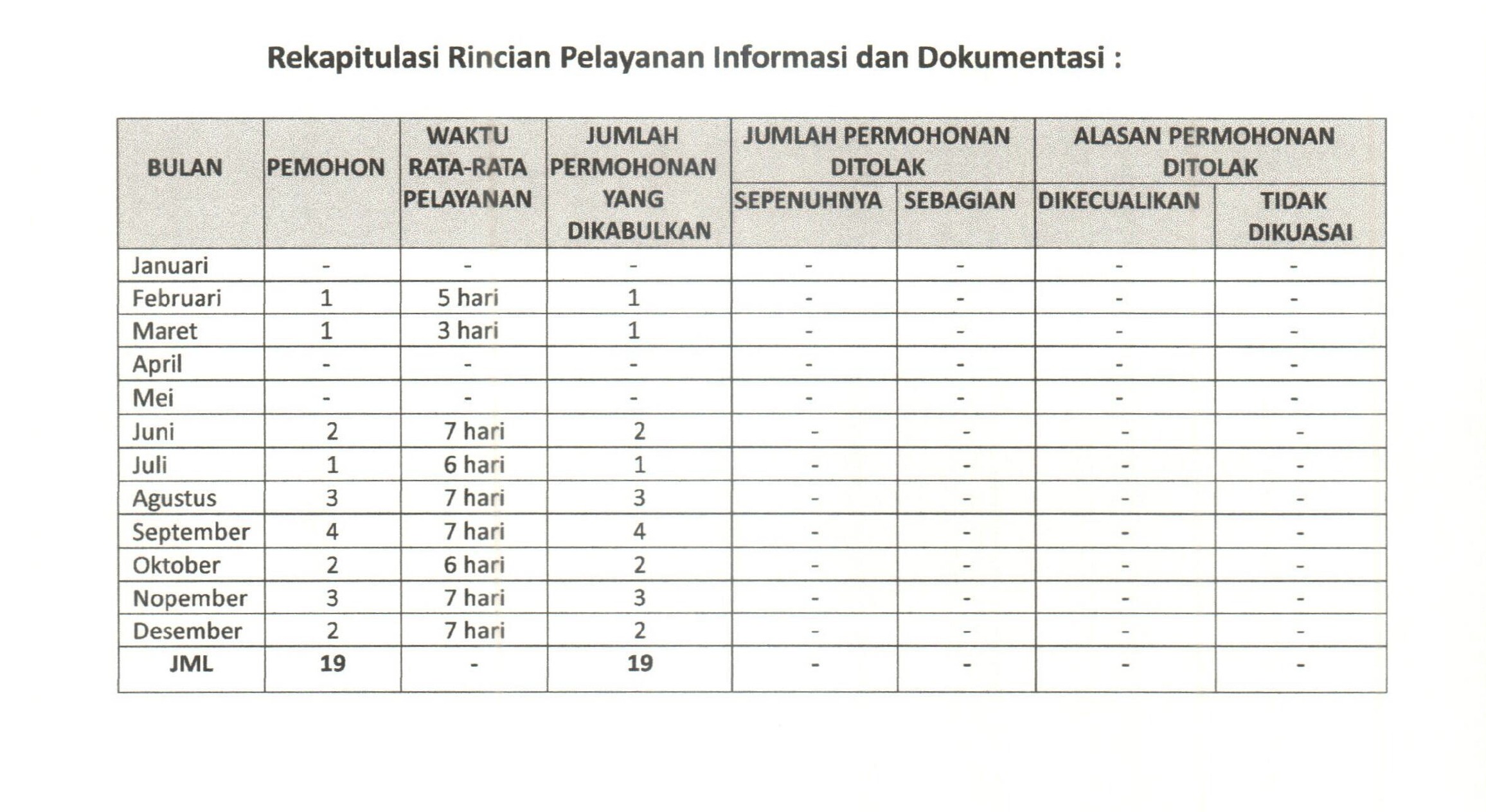 Berikut kami tampilkan jumlah permohonan informasi di Tahun 2024