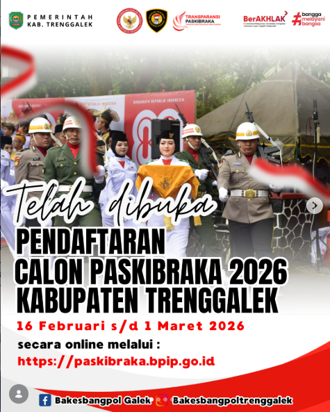 Informasi Berkala Badan Kesatuan Bangsa Dan Politik Pendaftaran Calon Paskibraka Tingkat Kabupaten Trenggalek SELENGKAPNYA 0 Lampiran 15 Februari 2026