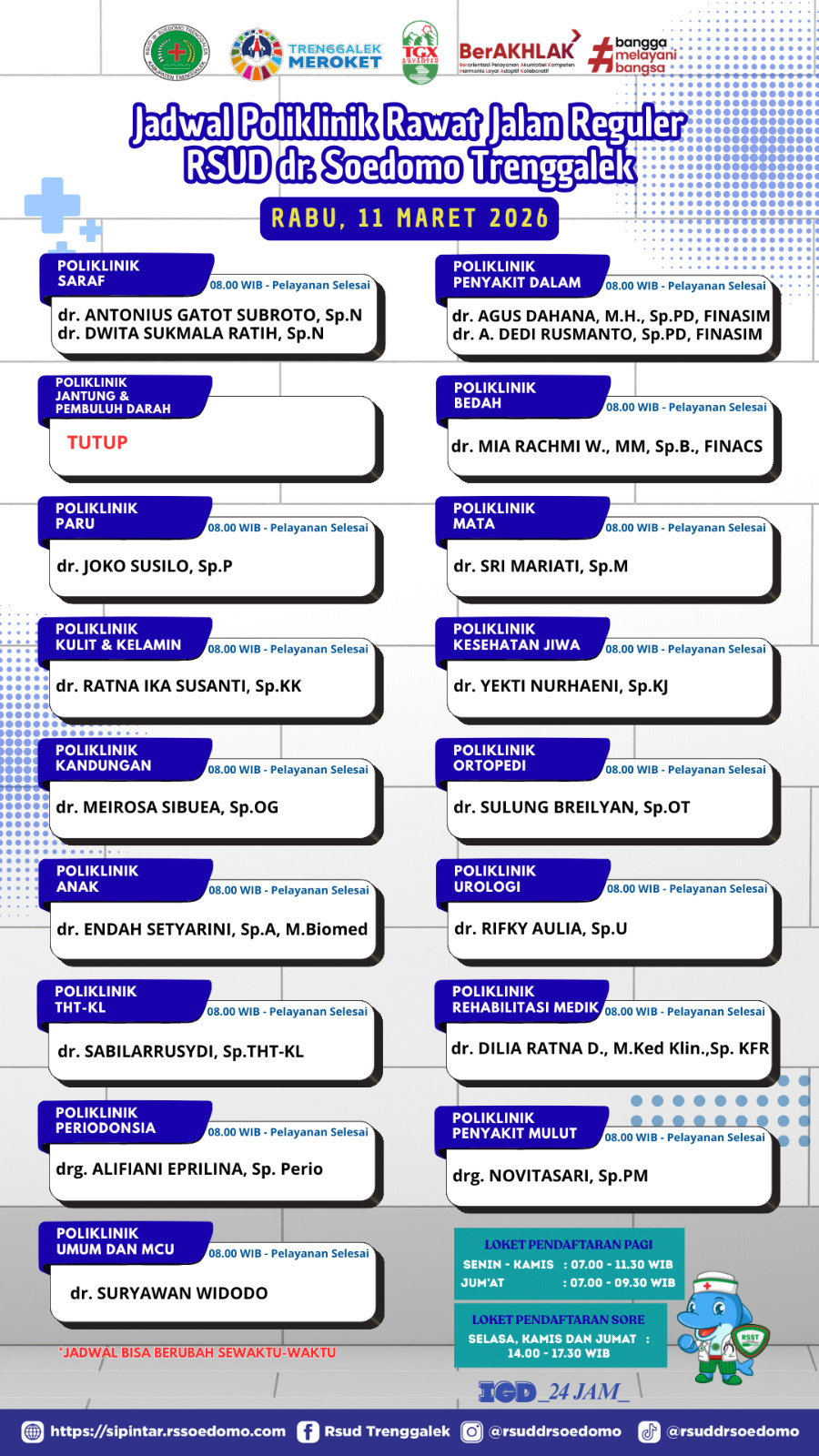 Pengumuman Rsud Dr. Soedomo PENGUMUMAN POLIKLINIK RAWAT JALAN dr. SOEDOMO TRENGGALEK SELENGKAPNYA 1 Lampiran 11 Maret 2026